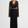 The Sofiya Long Sleeve Maxi Dress in Black is designed to make a striking statement. Featuring a sheer stretch lace bodice, this dress combines texture and allure, while the bias-cut satin skirt flows effortlessly with every step. The front bodice is lined for coverage, while the unlined back and sleeves add a touch of sultry sophistication.